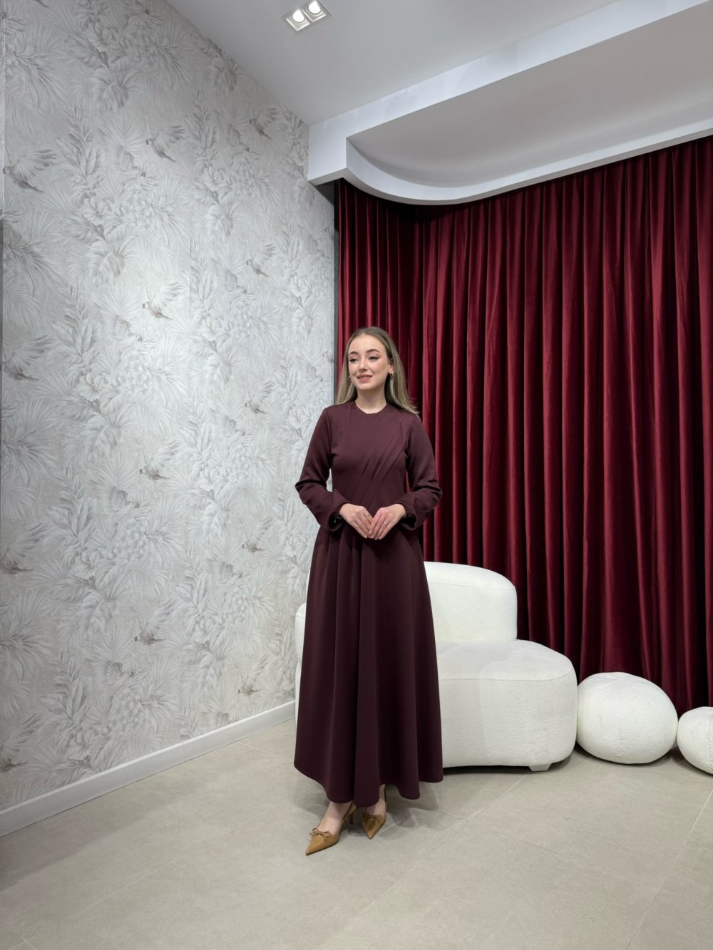 Ürünümüz scuba kumaştan üretilmiştir. Bisiklet yaka, önden pile detaylı arkadan fermuarlı olup kollar yırtmaçlıdır.