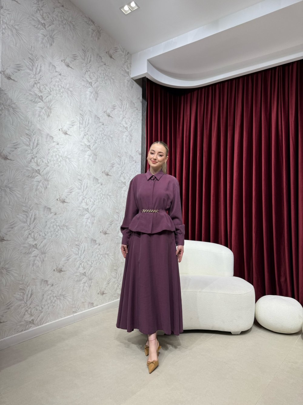 Ürünümüz modal kumaştan üretilmiştir. Gömlek klasik yaka, boydan gizli düğmeli, kollar manşetli olup aksesuar gold zincirli kuşak ile birlikte gönderilmektedir.