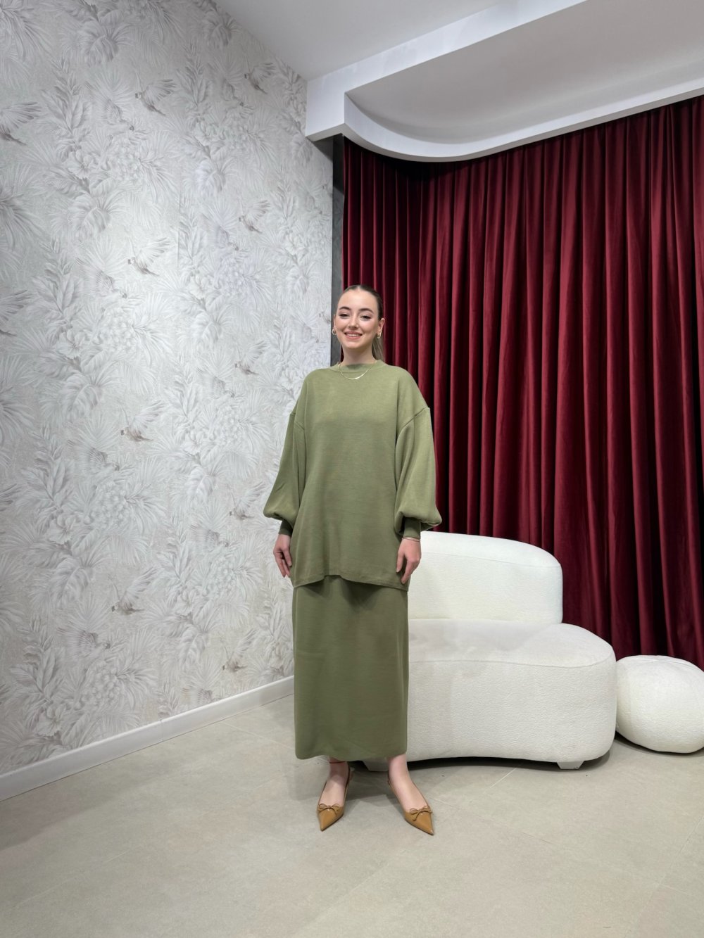 Tunik bisiklet yaka, düşük omuz, balon koldur.