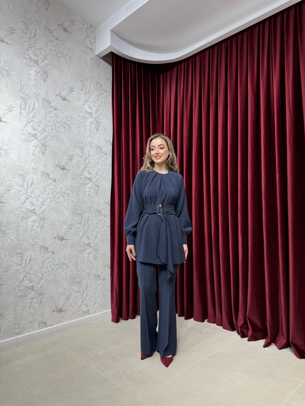 Ürünümüz modal kumaştan üretilmiştir. Tunik bisiklet yaka, arkadan fermuarlı, kollar manşetli olup aksesuar seyyar kemer ile birlikte gönderilmektedir.