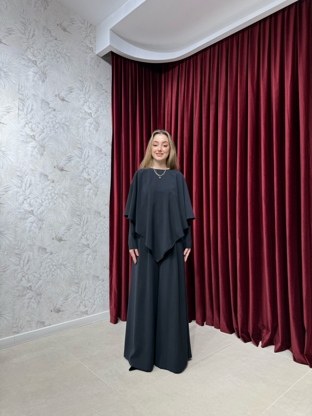 Panço bisiklet yaka arkadan fermuarlı olup asimetrik kesime sahiptir.