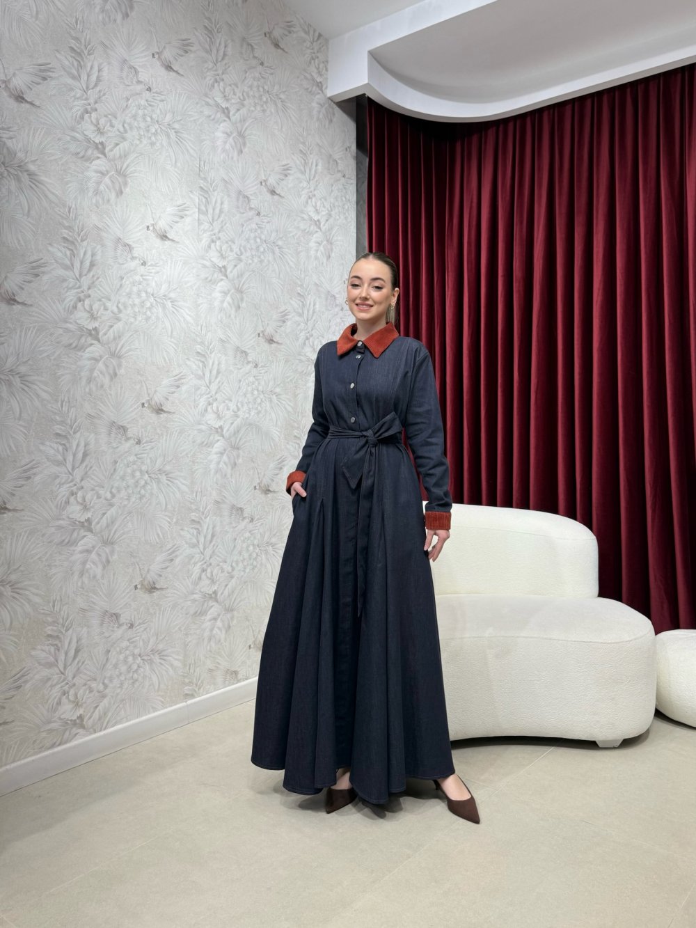 Yaka ve kol bilekleri kadife kumaş detaylıdır.