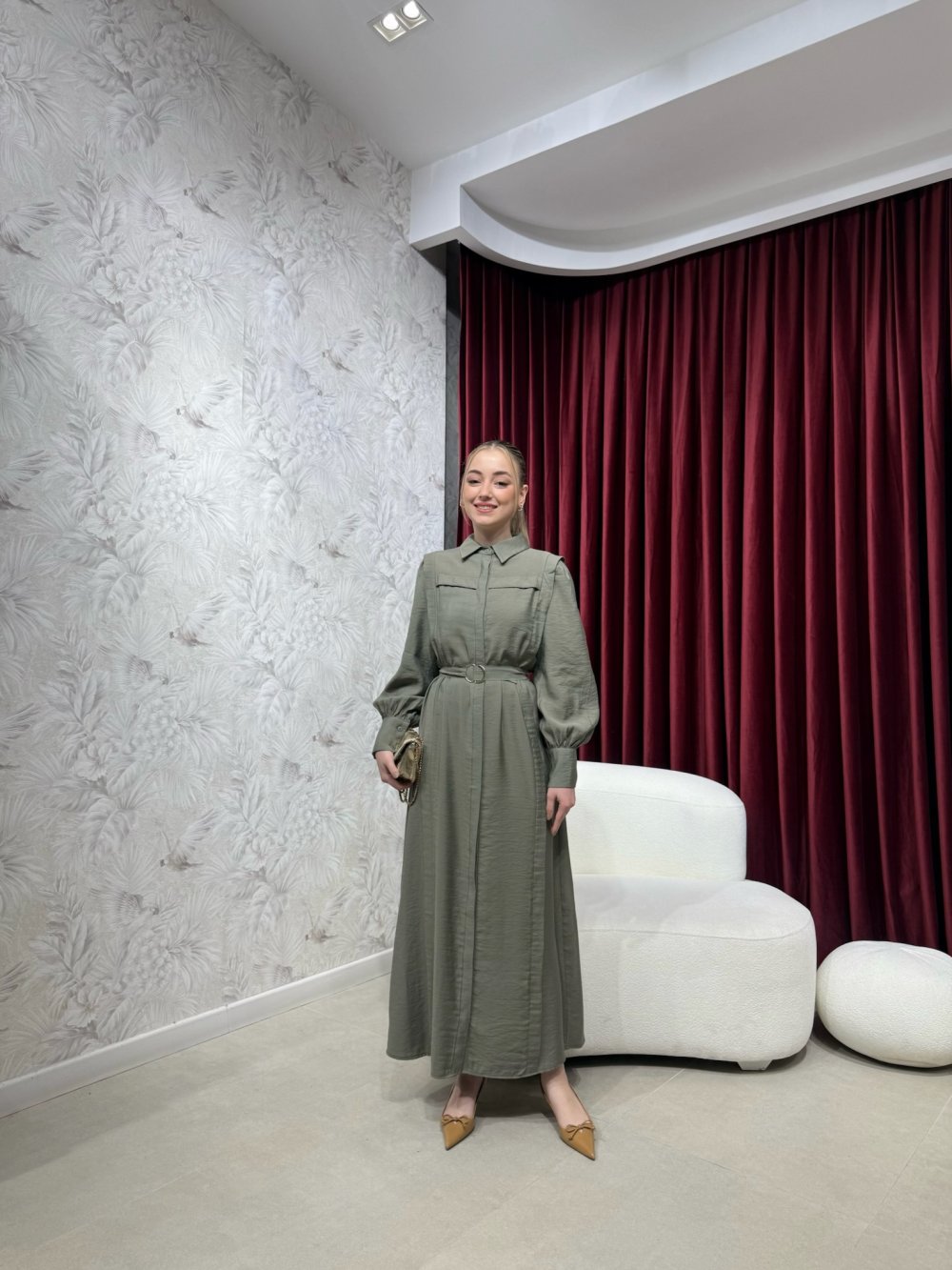 Bir adet gold aksesuarlı seyyar kuşakla birlikte gönderilmektedir. Ürünümüz önden gizli düğmelidir. Kolları hafif balon koldur.
