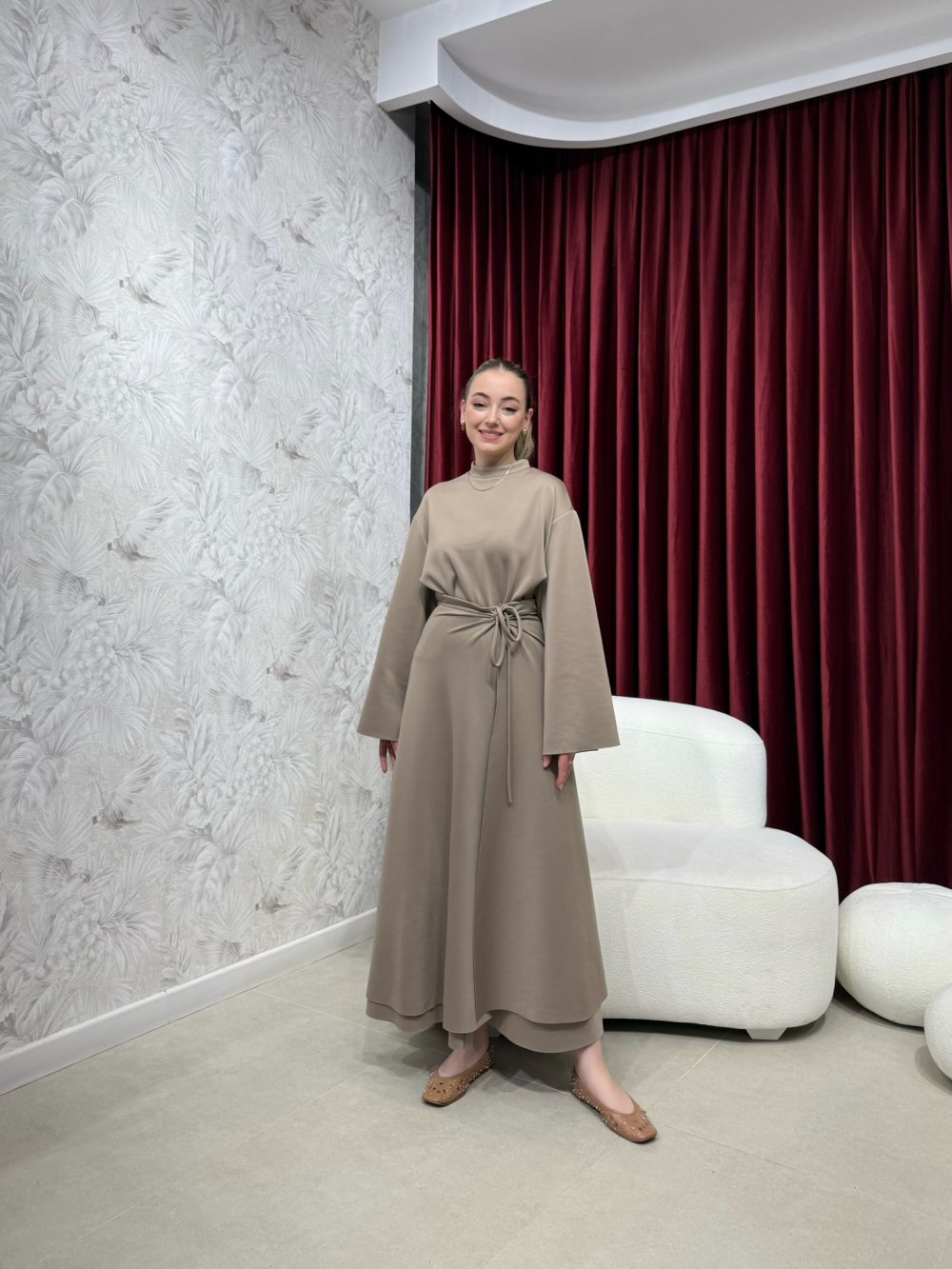 Etek arkadan fermuarlı olup kloş kesime sahiptir.