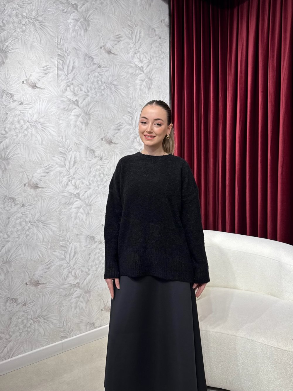 Ürünümüz yumoş kumaştan üretilmiştir. Bisiklet yaka, düşük omuzludur.