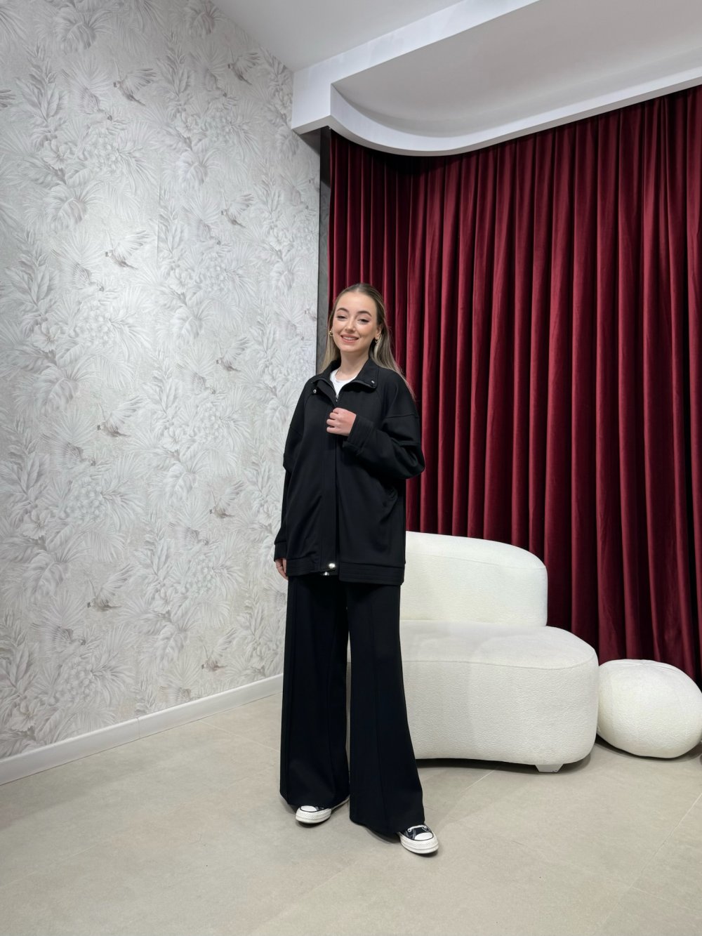 Tunik dik yaka, boydan fermuarlı, çıtçıt kapaklı, aktif iki cepli olup oversize kesime sahiptir.