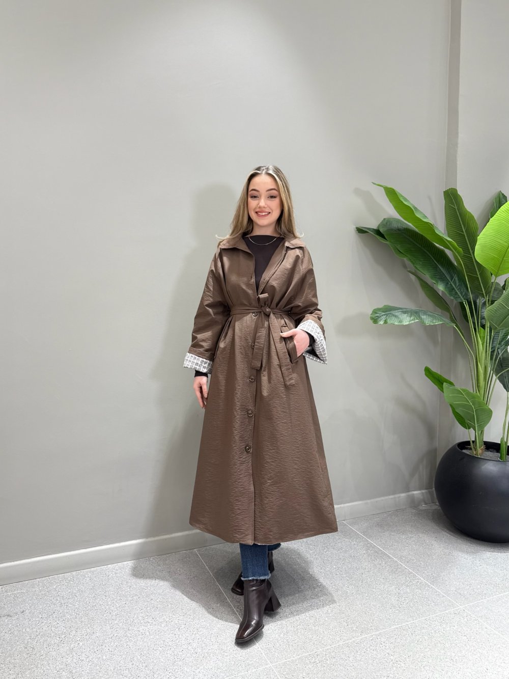 Ürünümüz paraşüt kumaştan üretilmiştir. Klasik yaka, boydan düğmeli, aktif iki cepli, ekose desenli astarlı olup seyyar kuşakla birlikte gönderilmektedir.