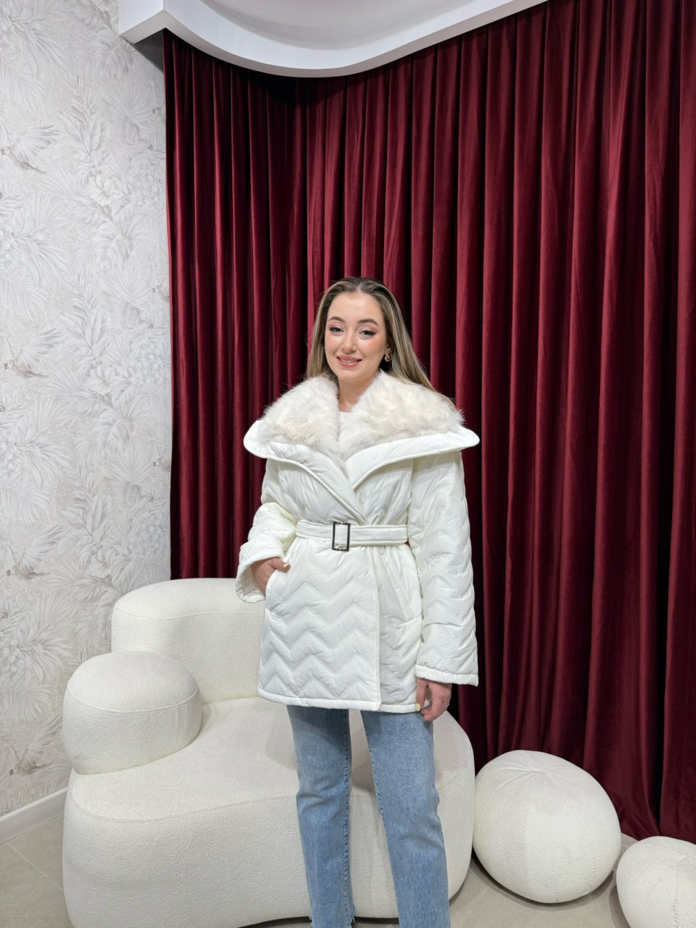 BBC KÜRK YAKALI ŞİŞME MONT - EKRU