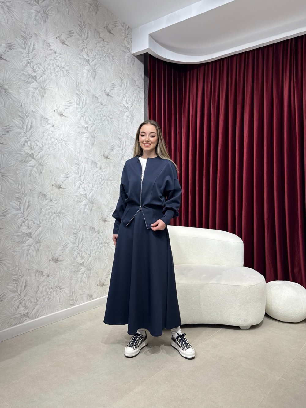 Etek önden kemerli arkadan lastikli, yandan fermuarlı olup kloş kesime sahiptir.