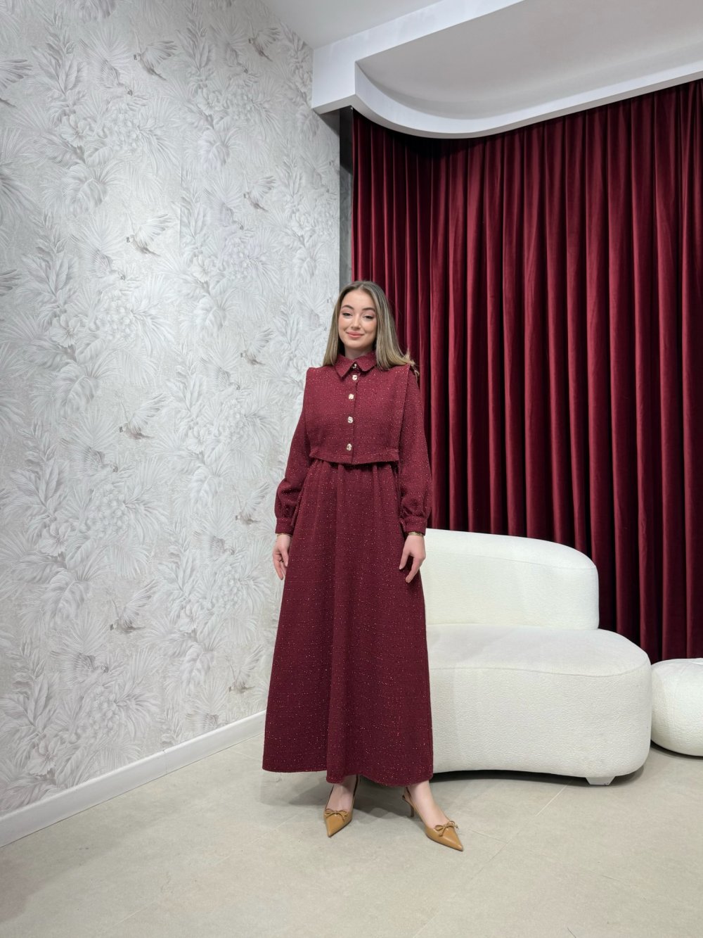 Ürünümüz simli tüvit kumaştan üretilmiştir.