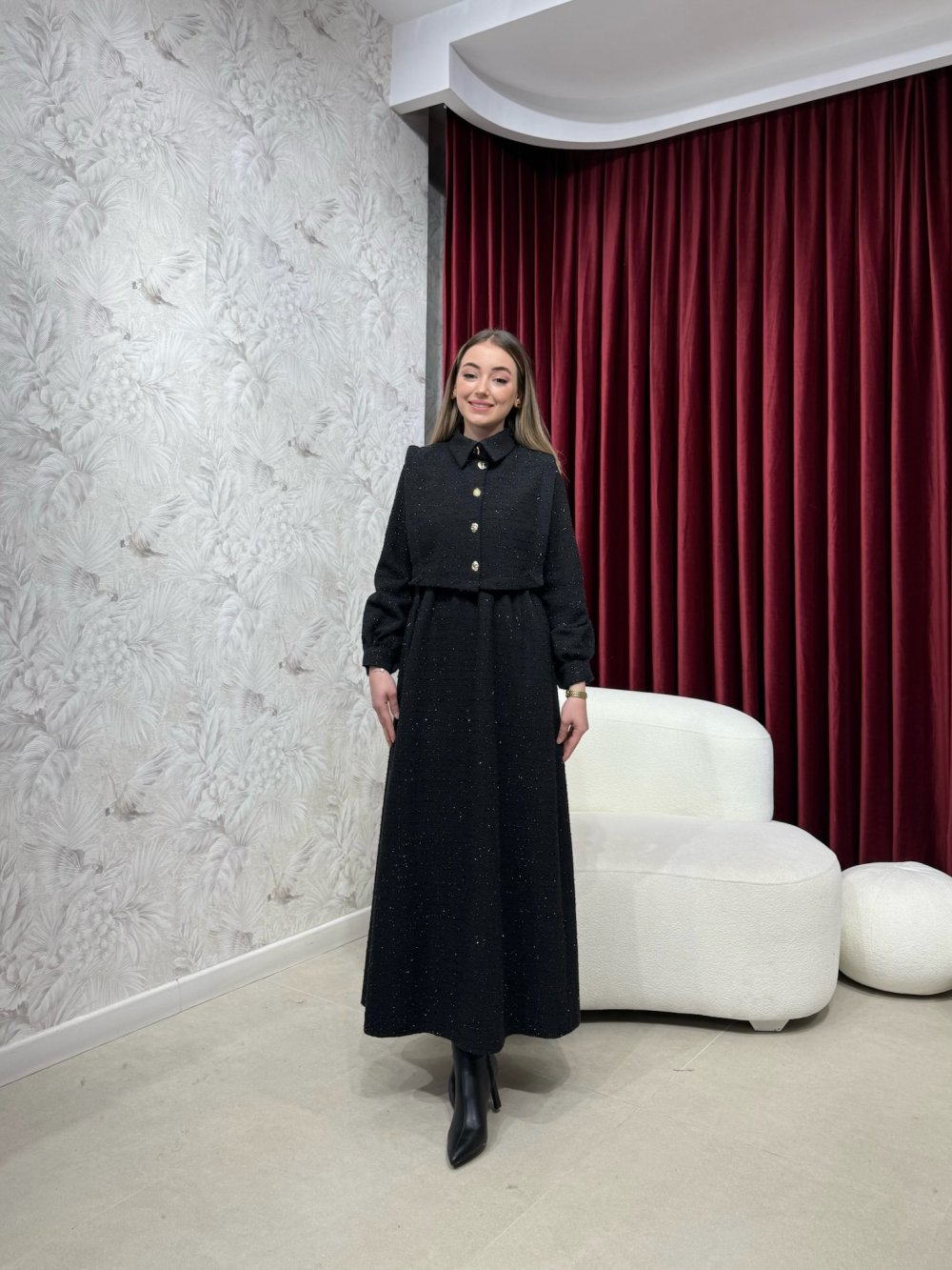 Ürünümüz simli tüvit kumaştan üretilmiştir.