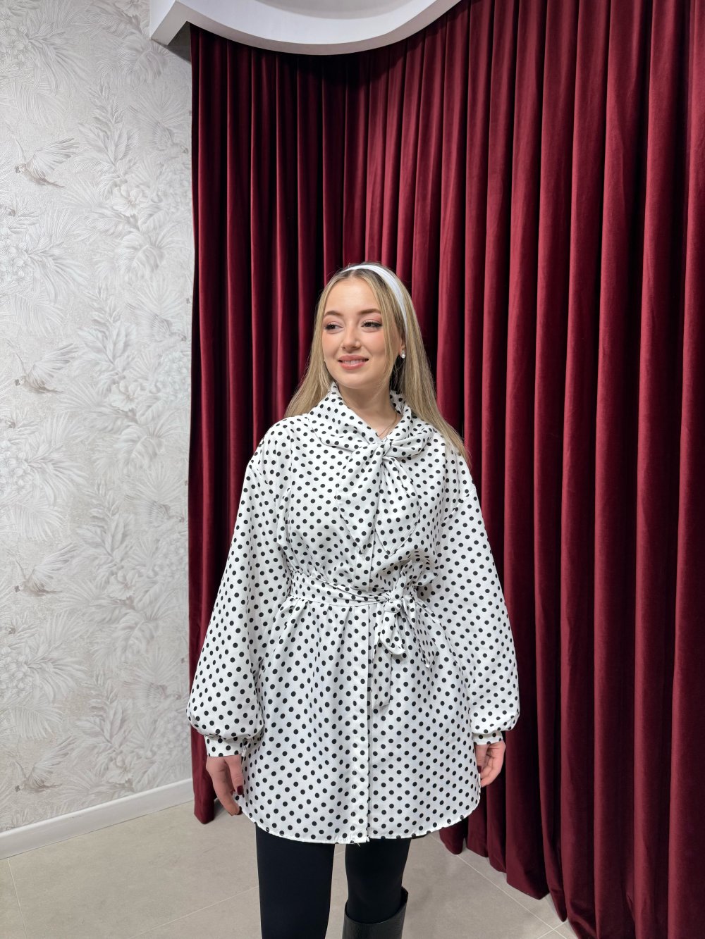 Ürünümüz pes kumaştan üretilmiştir. Denizci yaka, boydan gizli düğmeli, düşük omuz, kollar manşetli olup seyyar kuşak ile birlikte gönderilmektedir.