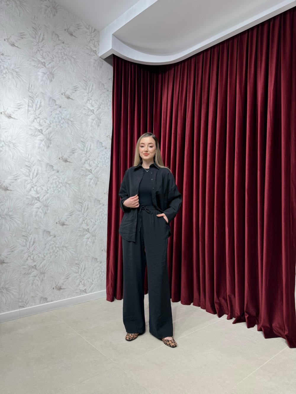 Ürünümüz modal kumaştan üretilmiştir. Gömlek klasik yaka, boydan düğmeli, kollar manşetli olup oversize kesime sahiptir.