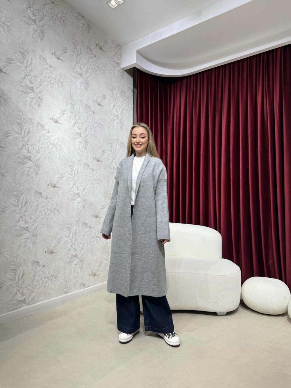 Ürünümüz yumoş triko kumaştan üretilmiştir. Düşük omuz, rahat kalıptır
