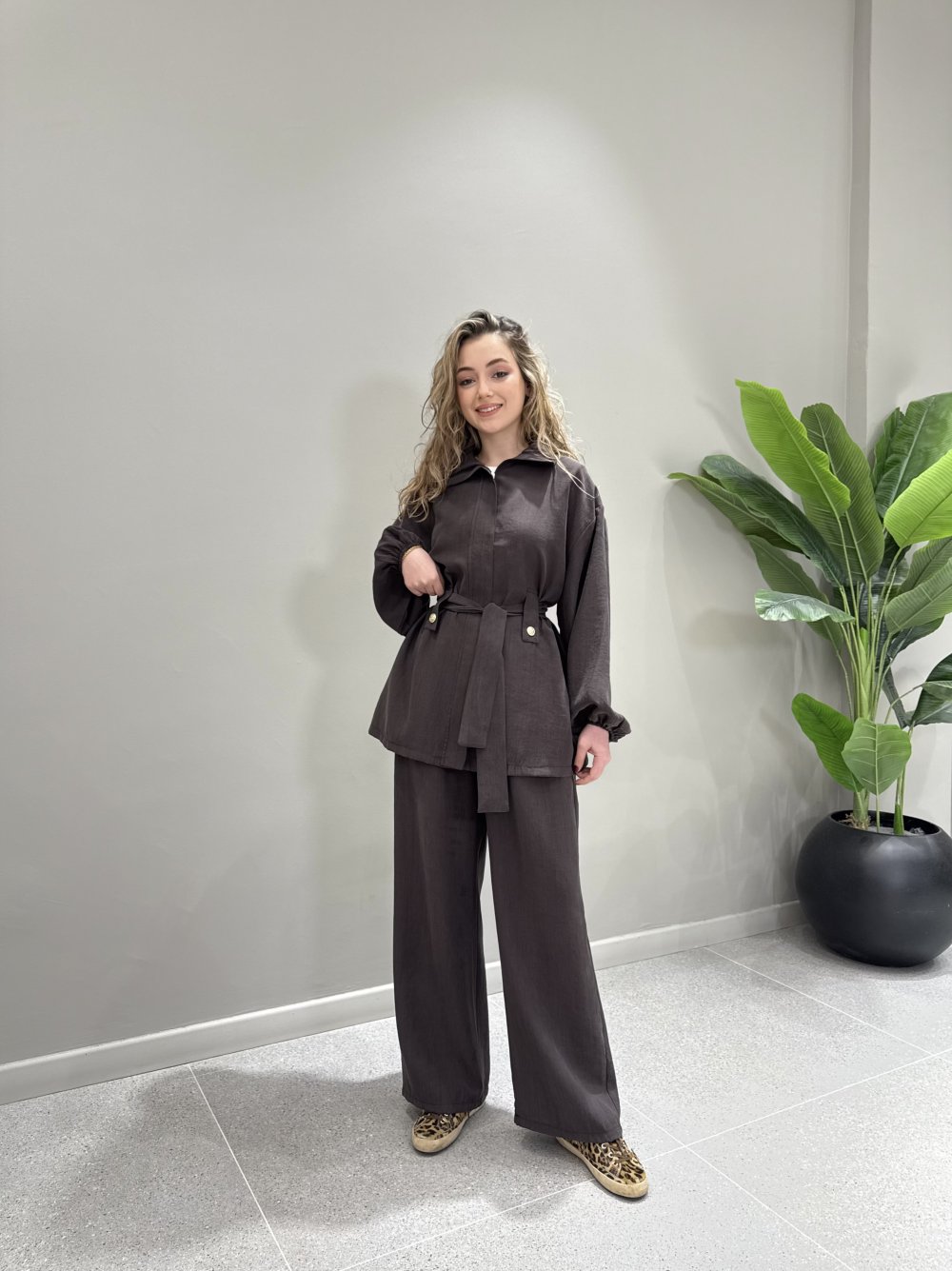 Ürünümüz modal kumaştan üretilmiştir. Tunik dik yaka, boydan gizli fermuarlı, düşük omuzlu, kollar lastikli, gold düğmeli kemer tünelli olup seyyar kuşak ile birlikte gönderilmektedir.